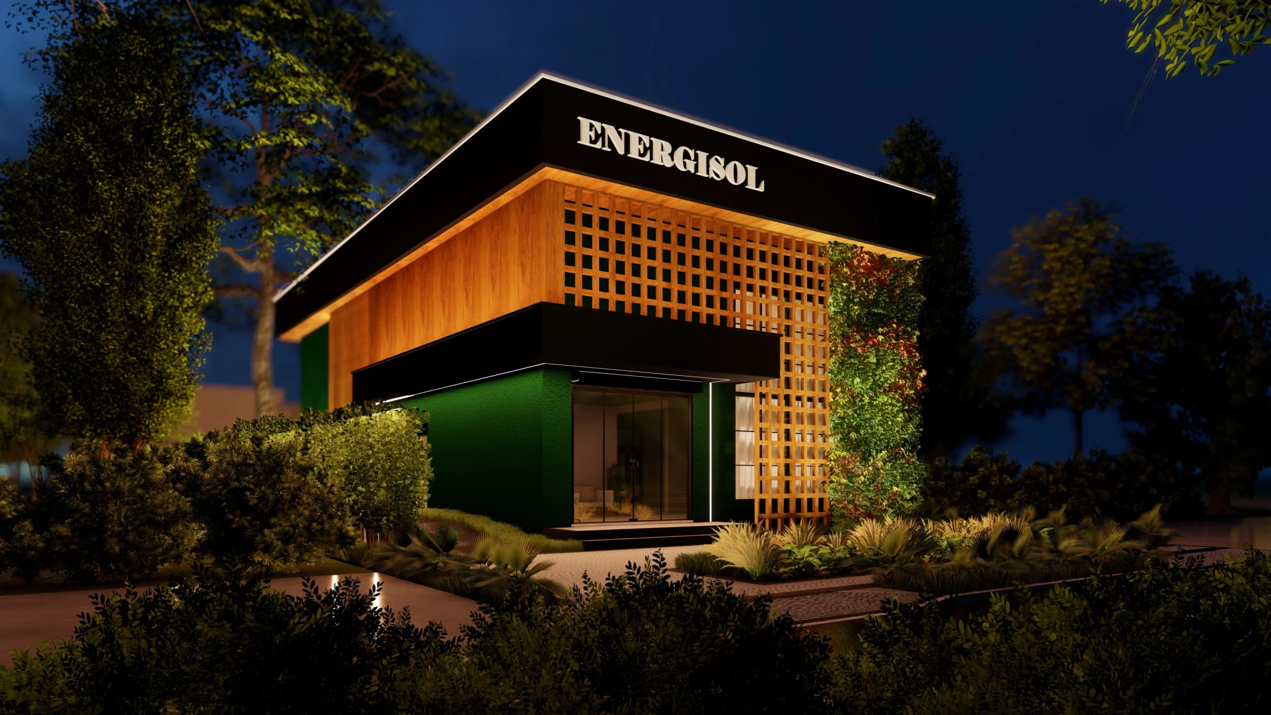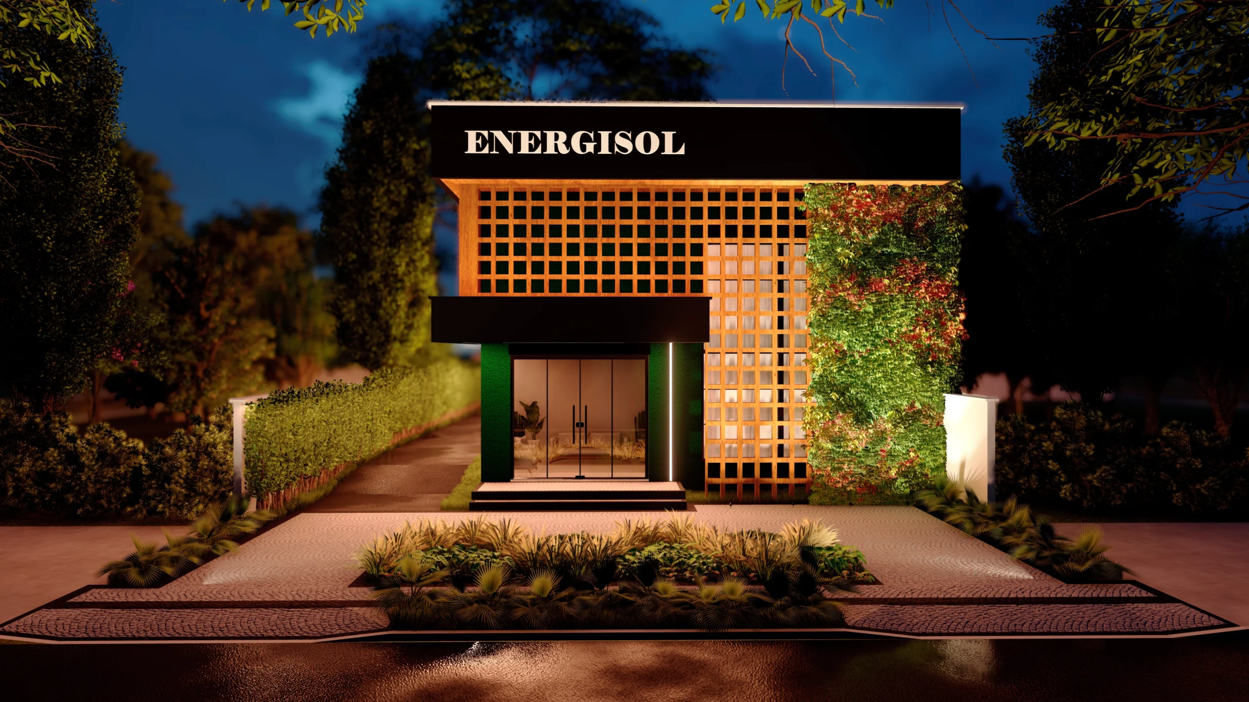 Projeto comercial do escritório de energia solar Energisol. O desafio foi criar uma arquitetura no estilo contemporâneo contendo uma estrutura de galpão. O projeto necessitava que a fachada tivesse a identidade e visão de futuro da empresa. A proposta uniu inovação e responsabilidade ambiental.